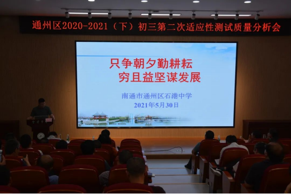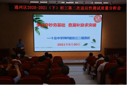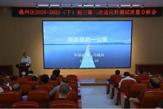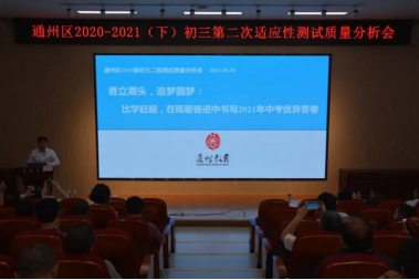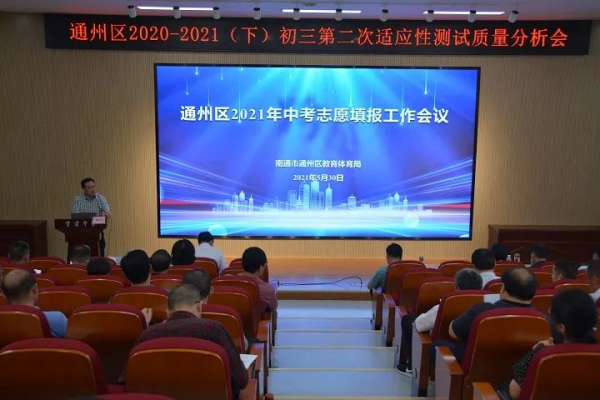 5月30日下午,区教育体育局在育才中学运盐河校区召开2020-2021年初三第二次适应测试质量分析会暨中考志愿填报工作会议。各教育督导组组长、中学教学辅导员,各初中校长、分管教学副校长、教务主任、初三年级组长,区教师发展中心主任、学科研训部主任,全体初中研训员参加会议。区教育体育局副局长胡清华出席会议并讲话。区教育体育局基教科蔡华军主持会议。