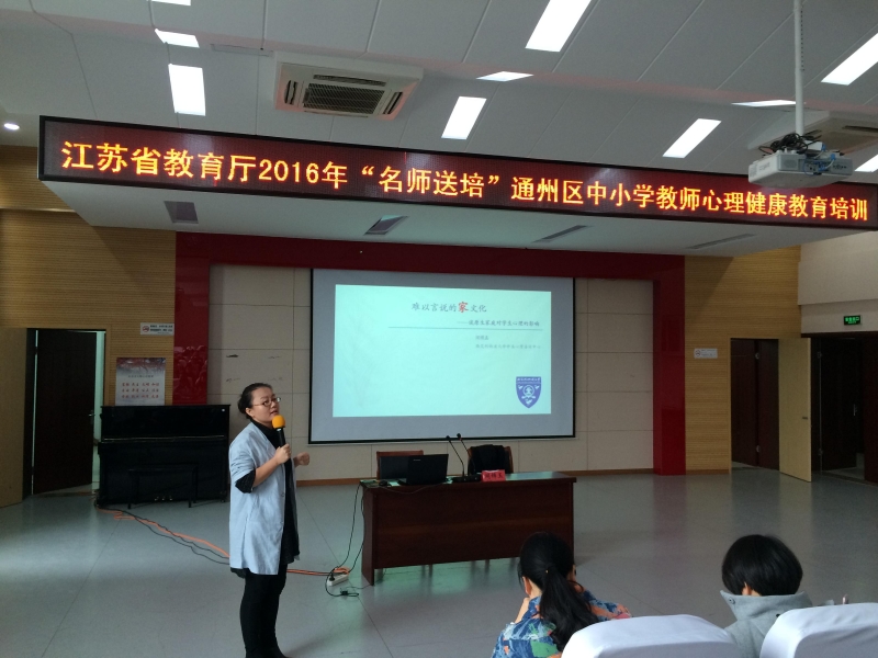 11月24日至26日,由江苏省教师培训中心主办、通州区教育局承办的江苏省教育厅2016年“名师送培”通州区中小学教师心理健康教育培训活动在通州区实验小学成功举行。来自全区中小学的专、兼职心理健康教育教师、优秀班主任代表、优秀教师代表共210人参加了培训活动。