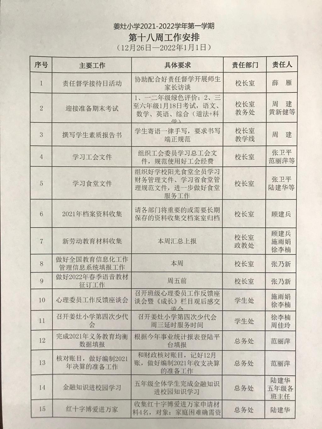 上一条:姜灶小学2021-2022学年第一学期第十九周工作安排 下一条:姜灶小学2021-2022学年第一学期第十七周工作安排