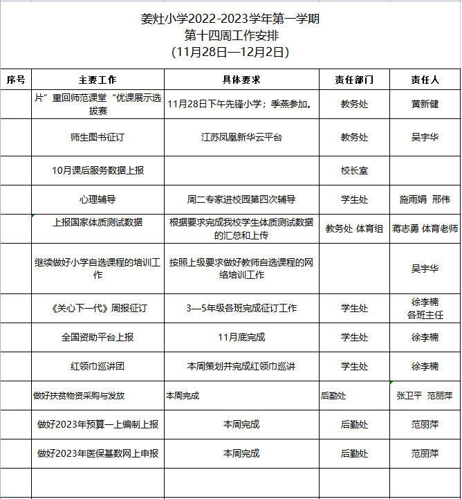 上一条:【姜灶小学】关于协助组织开展 2022 年对省级人民政府履行教育职责情况满意度调查的通知 下一条:姜灶小学2022-2023学年度第一学期第十三周工作安排
