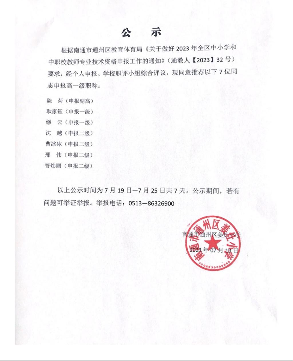 上一条:2023年职称申报人员育人事迹、个人任课表、简介表公示 下一条:南通市中小学教师违规补课行为认定与处理办法(试行)