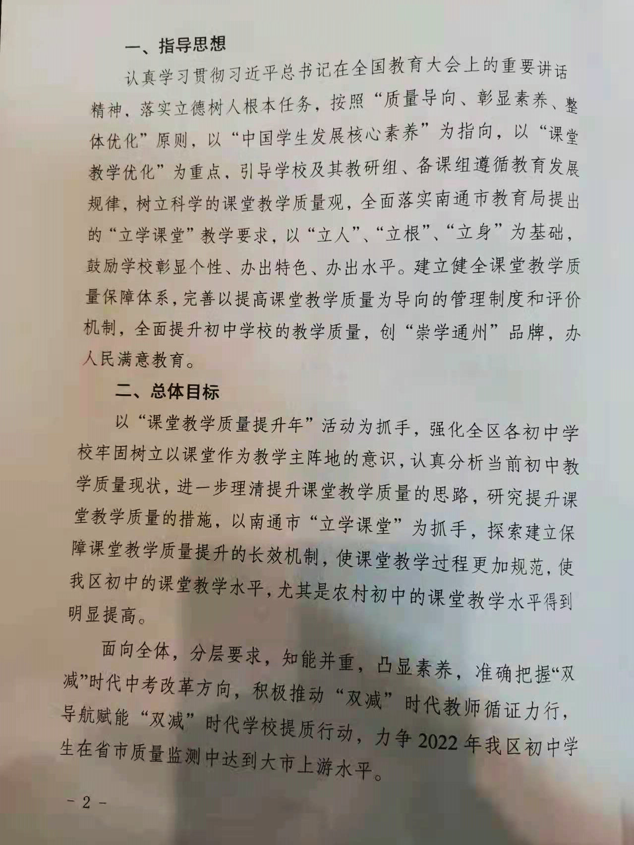 通州区初中“课题教学质量提升年”实施方案