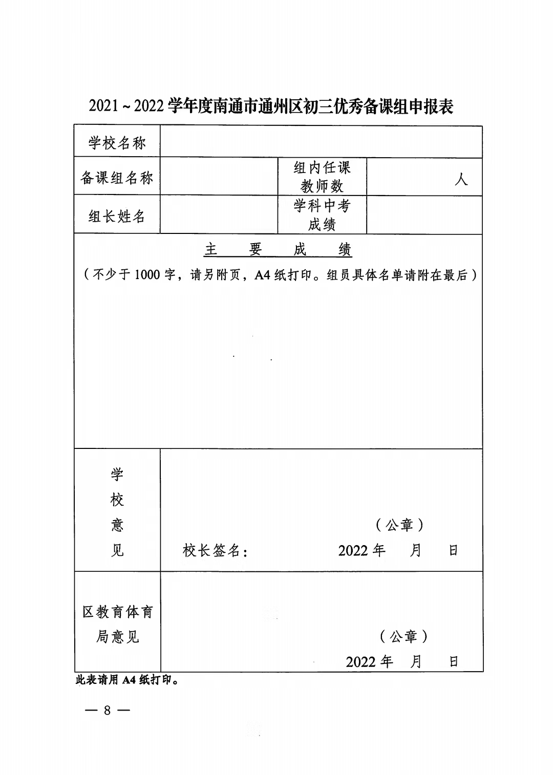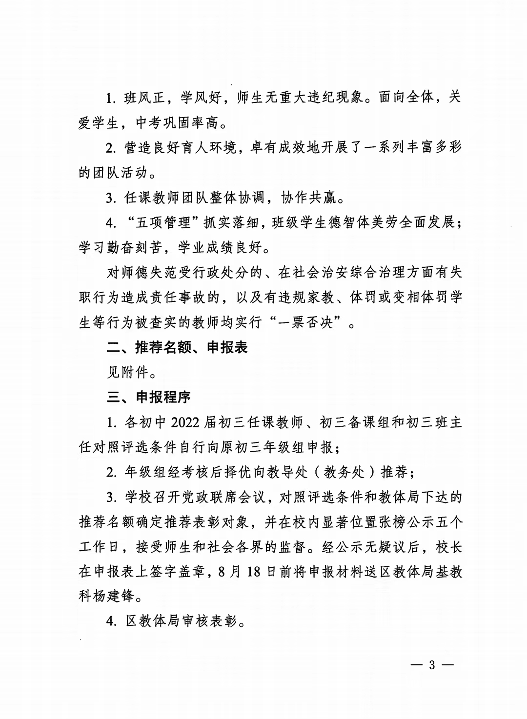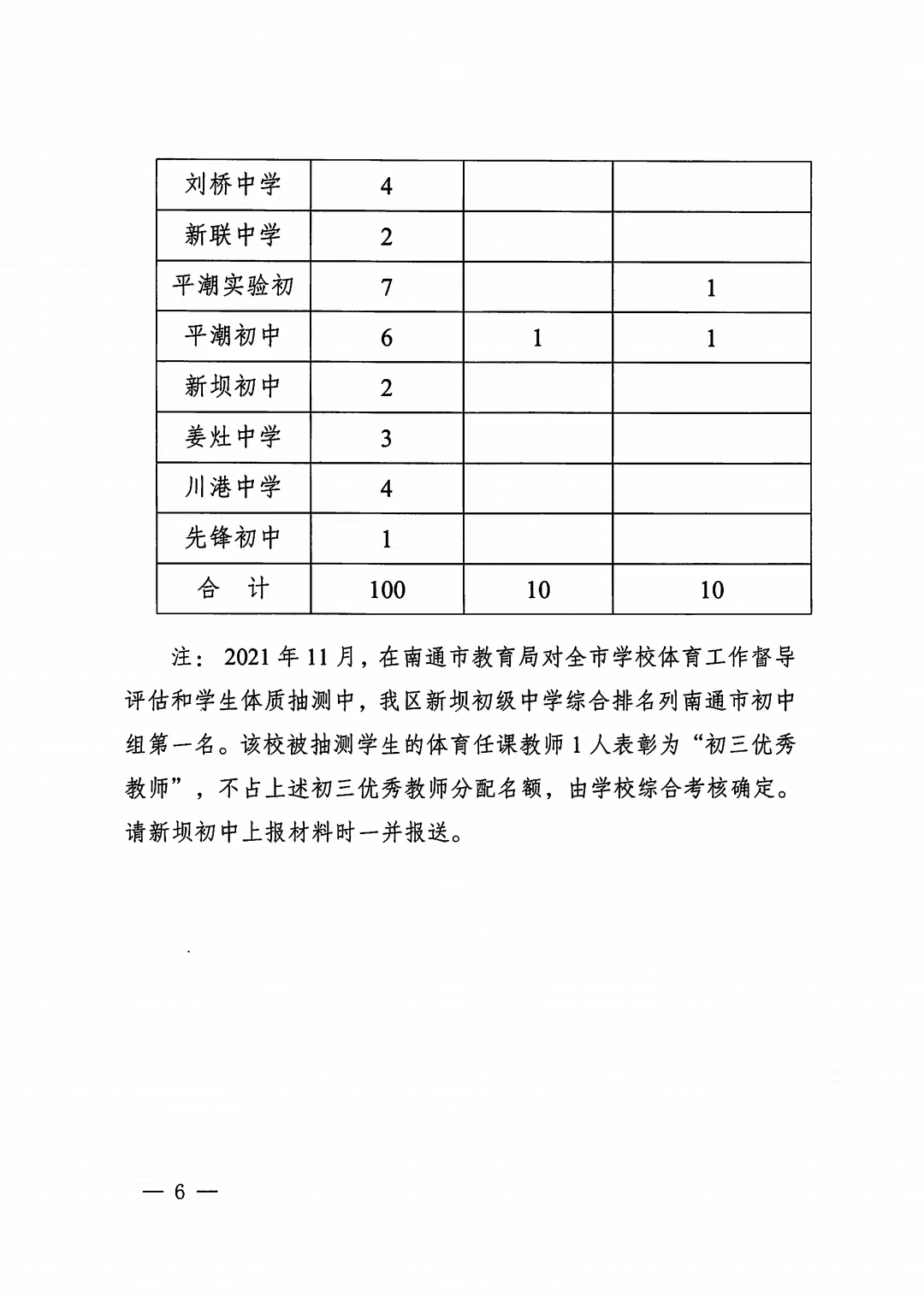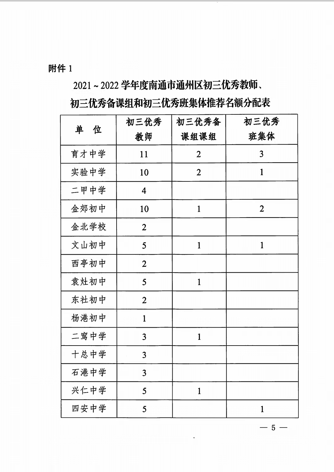 2021~2022学年度初三优秀教师、班集体、备课组长评选