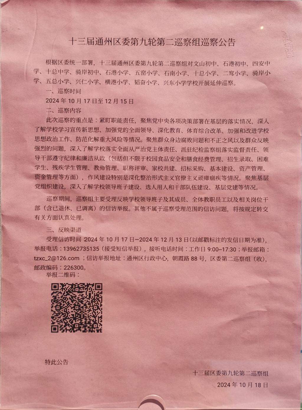 十三巡视巡查公告届通州区第九轮第二巡察公告