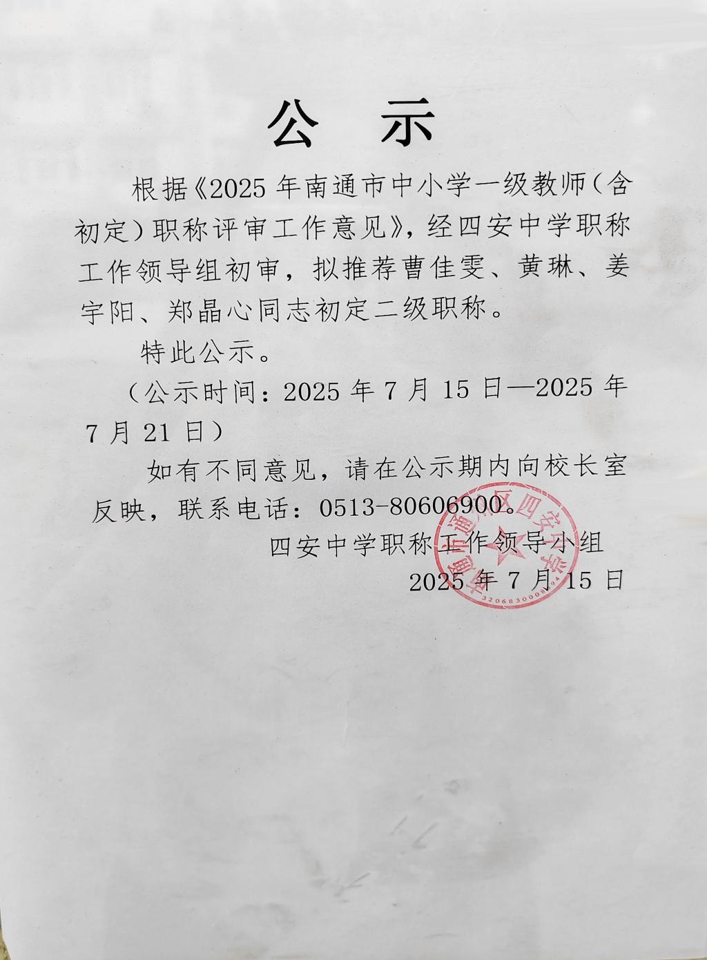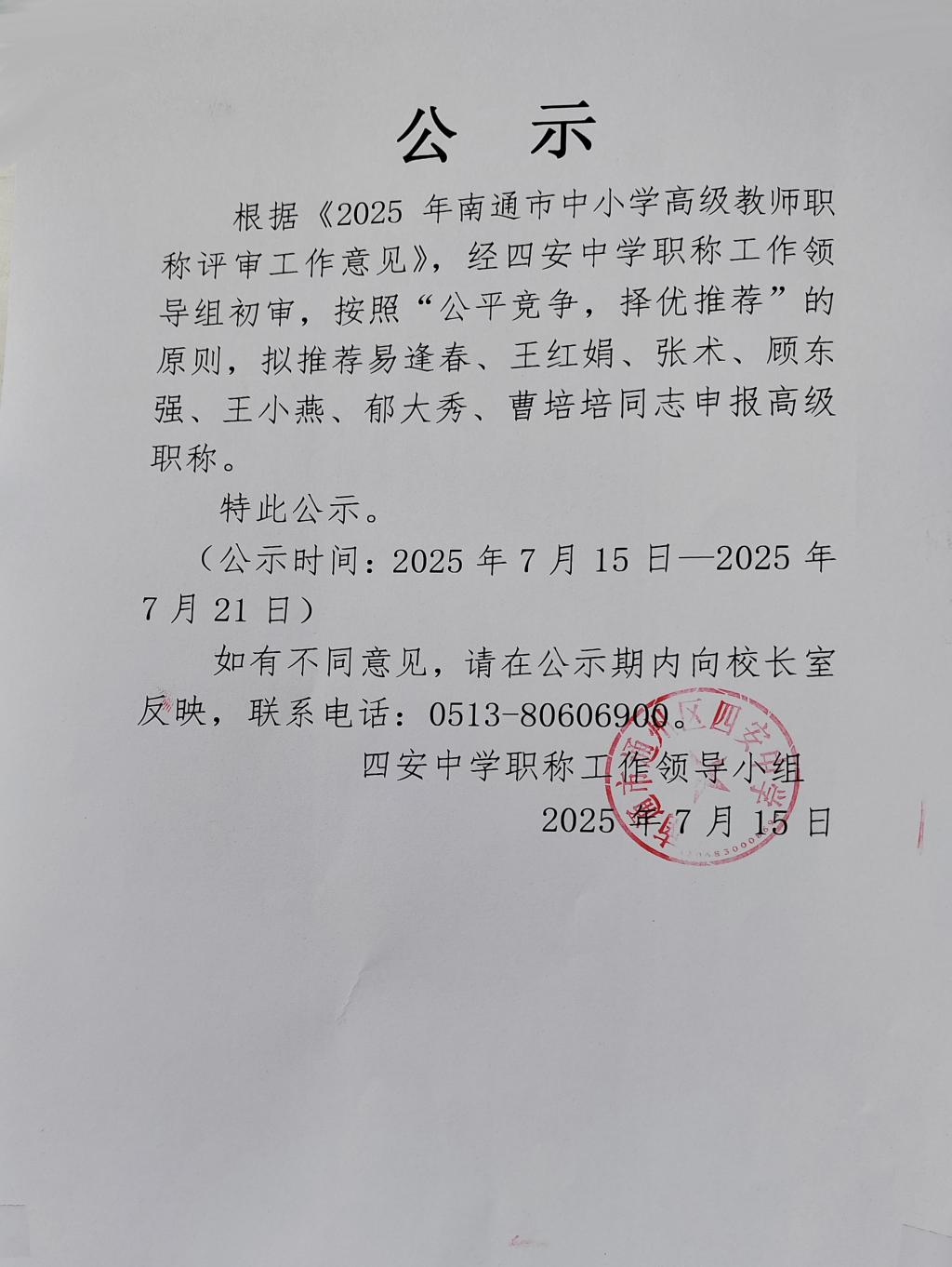 南通市通州区四安中学 地址:南通通州区兴仁镇四安社区文卫路7号