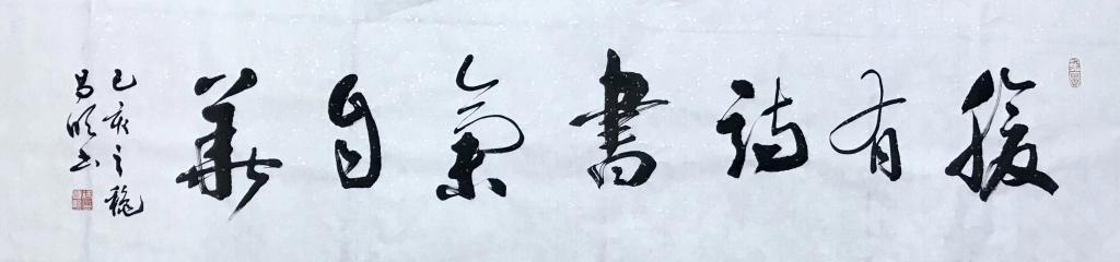 今年国庆节假日期间,群里几个南通的朋友来我农村家里小聚,其中包括江苏省书法协会会员,南通书法家徐昌明老师,徐老师字写得漂亮,为人谦虚、低调,喜交朋友,曾送我一幅字,一直对他怀有感激之心,没想到的是徐老师此次光临寒舍竟给朋友们带来了他的墨宝,这让朋友们惊喜异常,于我则是满心的感动与内疚,因为我知道,要写这么多字,还要把这些字写得那么好要花费多少的时间和精力,这对于一个已六十好几的老先生来说是多么累人的事,此时我的心情已不是感动一词能形容的了。