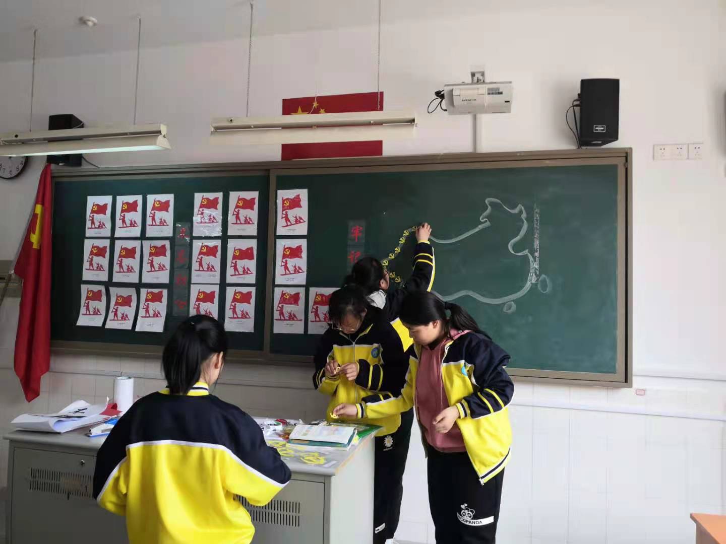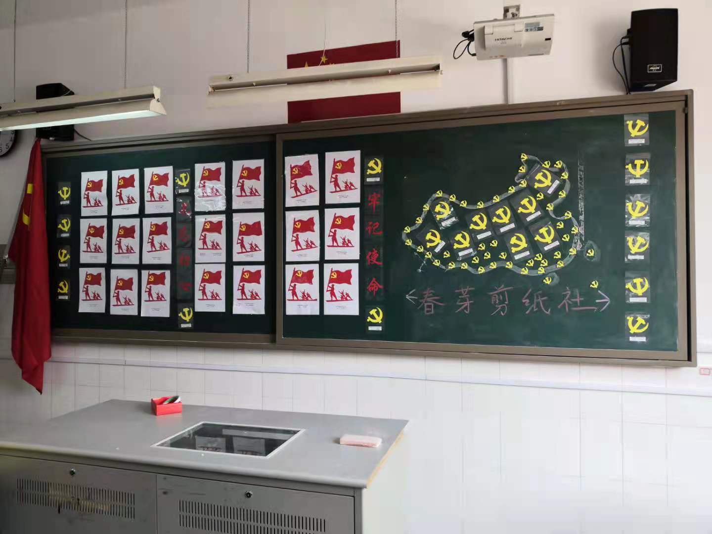 由顾伯安、徐井成主持的剪纸社团利用社团活动课,指导学生创作与建党100年有关的剪纸作品。
