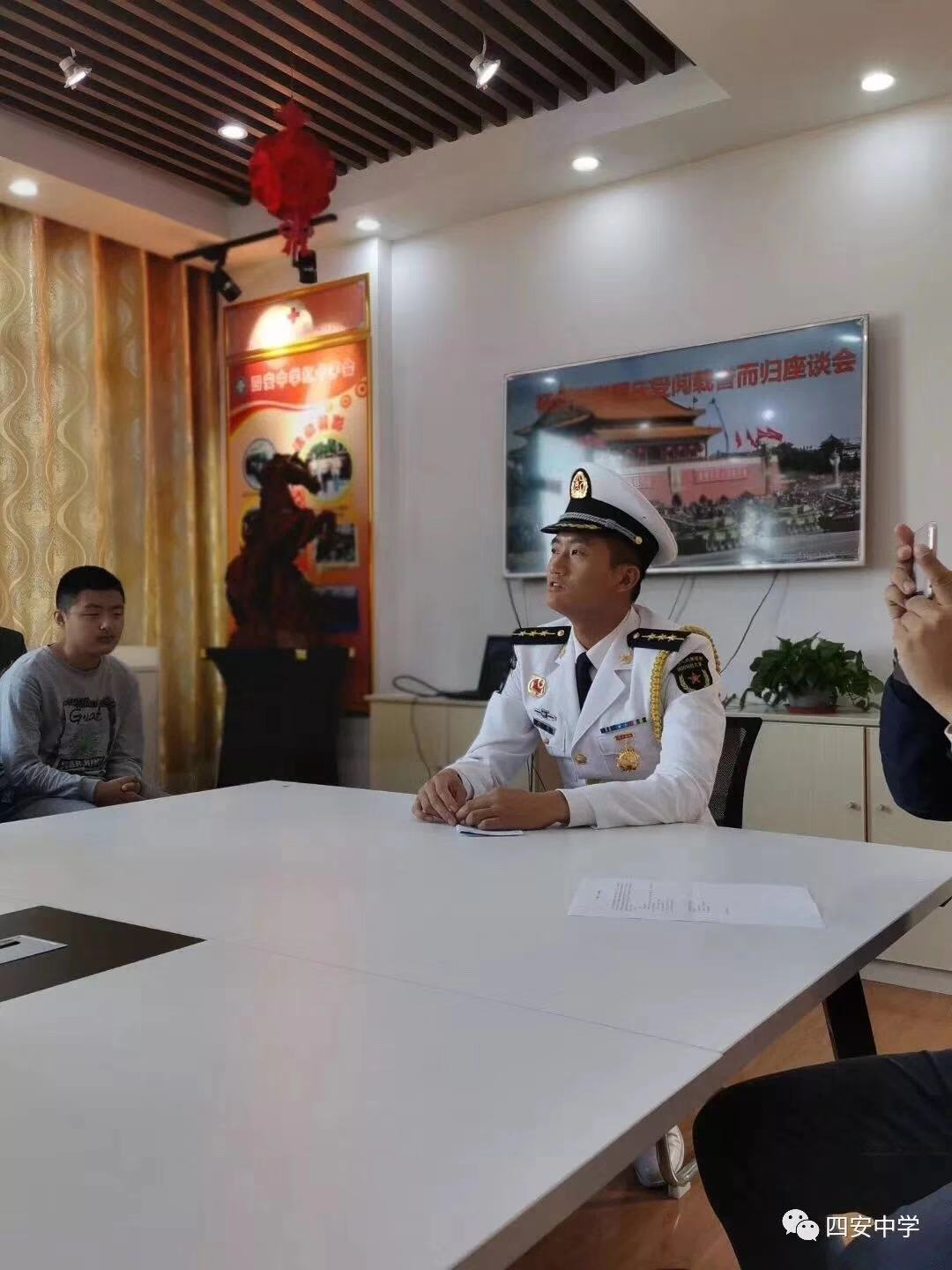 受我校邀请,10月23日上午10:28杨烨来校访谈,中午12:30与初三学生代表见面座谈,与同学们分享了阅兵训练中的苦与乐。在学弟们交流时说,训练很辛苦,但是从来没有想过放弃,简单枯燥的动作,反反复复的训练,还要忍受伤痛,但是想起自己的使命和担当,一切困难都可以克服。经过千万次的训练,让自己的肌肉也形成记忆,保证在任何情况下动作不变形。杨烨鼓励学弟学妹们学习也如阅兵操练,必须认真练习,才能在任何时候发挥出自己的真实水平。