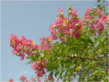 紫薇素有“夏之樱花”的美誉。夏秋之季,当一众花木因高温的炙烤开不出繁花、形不成气候之时,这一树紫薇却蓬勃灿烂在艳阳底下,繁花满枝,云蒸霞蔚,姹紫嫣红。