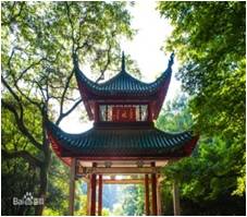 在蕊春园古树丛中有一座古老的建筑——延月亭。亭下凝望,黑绿相间的亭盖古朴典雅,上面以金黄宝葫芦镇顶,高高翘起的六个亭檐角,如反转的龙爪,颇有托月之势。红色的亭柱上刻着两副我校老师创作的楹联:“新韵穿云读曙色,古亭抱物延月华。”“吹箫山水眺明月,吟卷亭台唱晨曦。”生动地表现出实小人在亭中“品茗赏景看明月,读书吟唱作诗画”的一份宁静与自由。