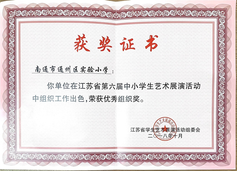 第六届中小学艺术展演活动优秀组织奖