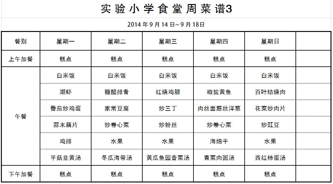 2014~2015学年第二学期第十九周学生午餐...
