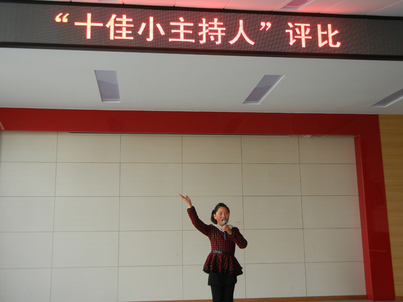 4月29日,来自一-五年级的近50名队员经过自主申报来到了“十佳小主持人”的比赛现场。经过竞选演讲和即兴话题演说两个环节,12名队员脱颖而出,成功当选为2015年“十佳小主持人”。(名单附后)