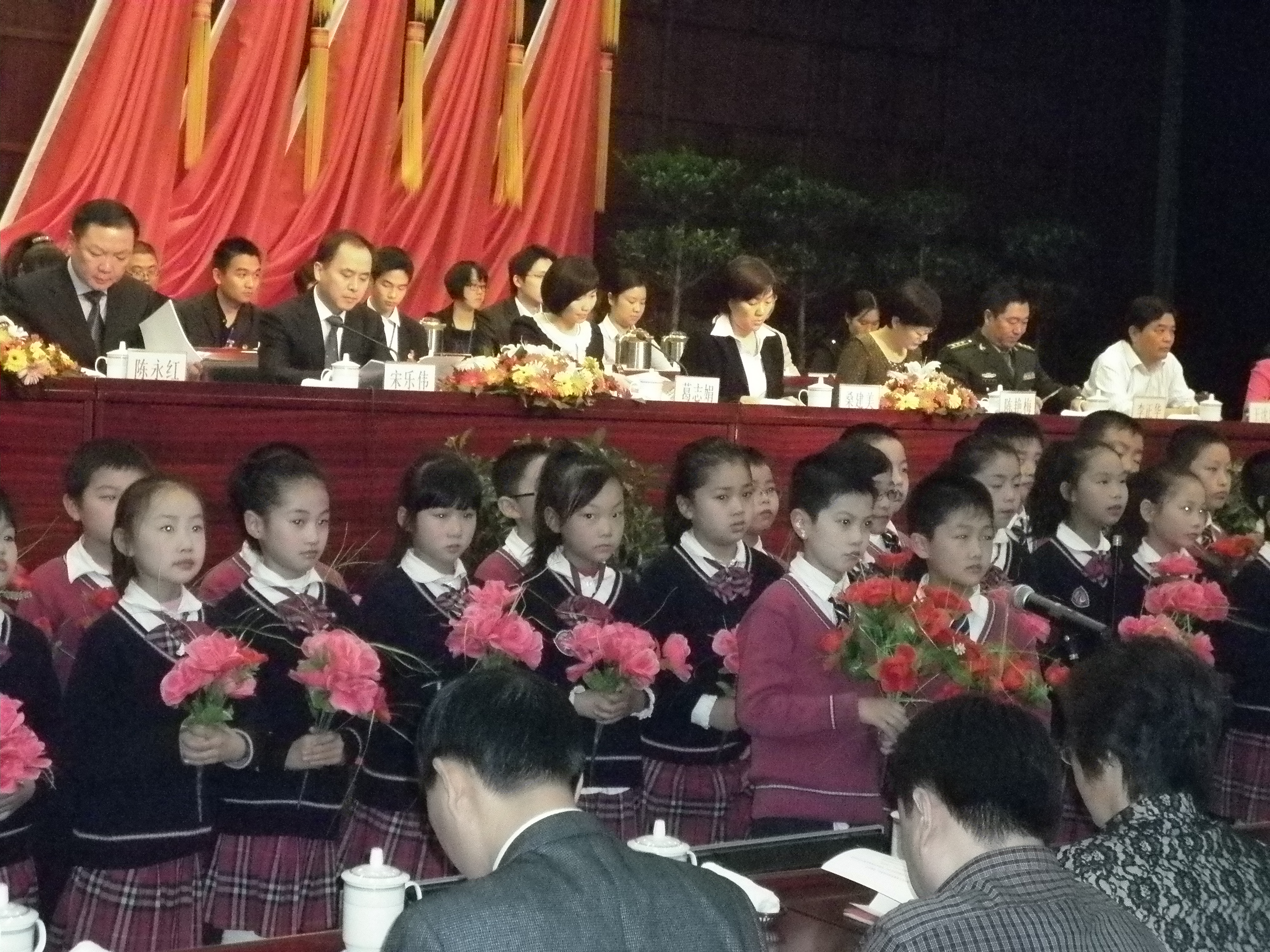 今天,我校三年级学生参加了通州区共青团第16次代表大会的开幕仪式。开幕式中,我校学生代表手捧鲜花,他们以深情并茂的诗朗诵《腾飞的通州》赢得了代表们的片片掌声。