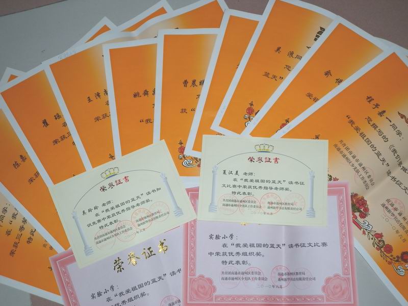 通州区“我爱祖国的蓝天”读书征文比赛获奖名单