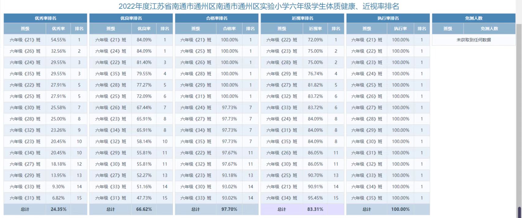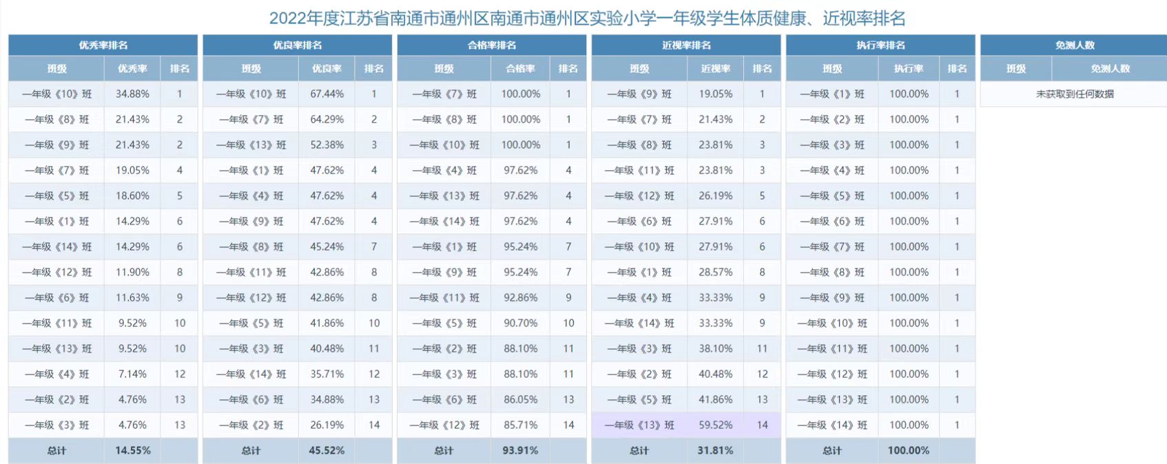 【通州实小】公示:2022年度南通市通州区实验小学学生体质健康、近视率排名